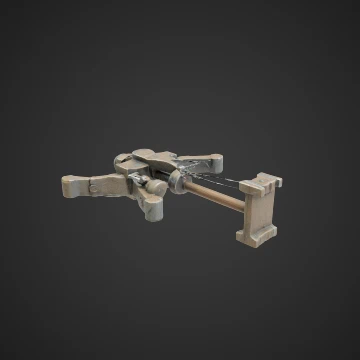 A formidable dwarven siege crossbow built for durability and power. Constructed from heavy stone and reinforced with metal bands, the design features a massive bolt and a robust trigger mechanism. The weathered surface and battle scars tell a story of fierce battles fought.