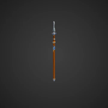 An elegant knight’s lance crafted from polished oak with a slender, elongated profile. The shaft is adorned with knightly motifs, painted in royal blue and gold accents that give it a regal appearance. The spearhead is a classic leaf shape, made from tempered steel, showing a high level of detail with realistic surface imperfections. This model is ideal for fantasy-themed games and CGI animations.