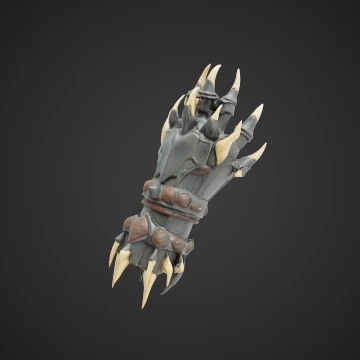 Rugged and bulky, these gauntlets are forged from dark iron with jagged edges and adorned with bones and leather straps. Their crude design reflects the brutal nature of orcish warriors, perfect for rugged fantasy settings.